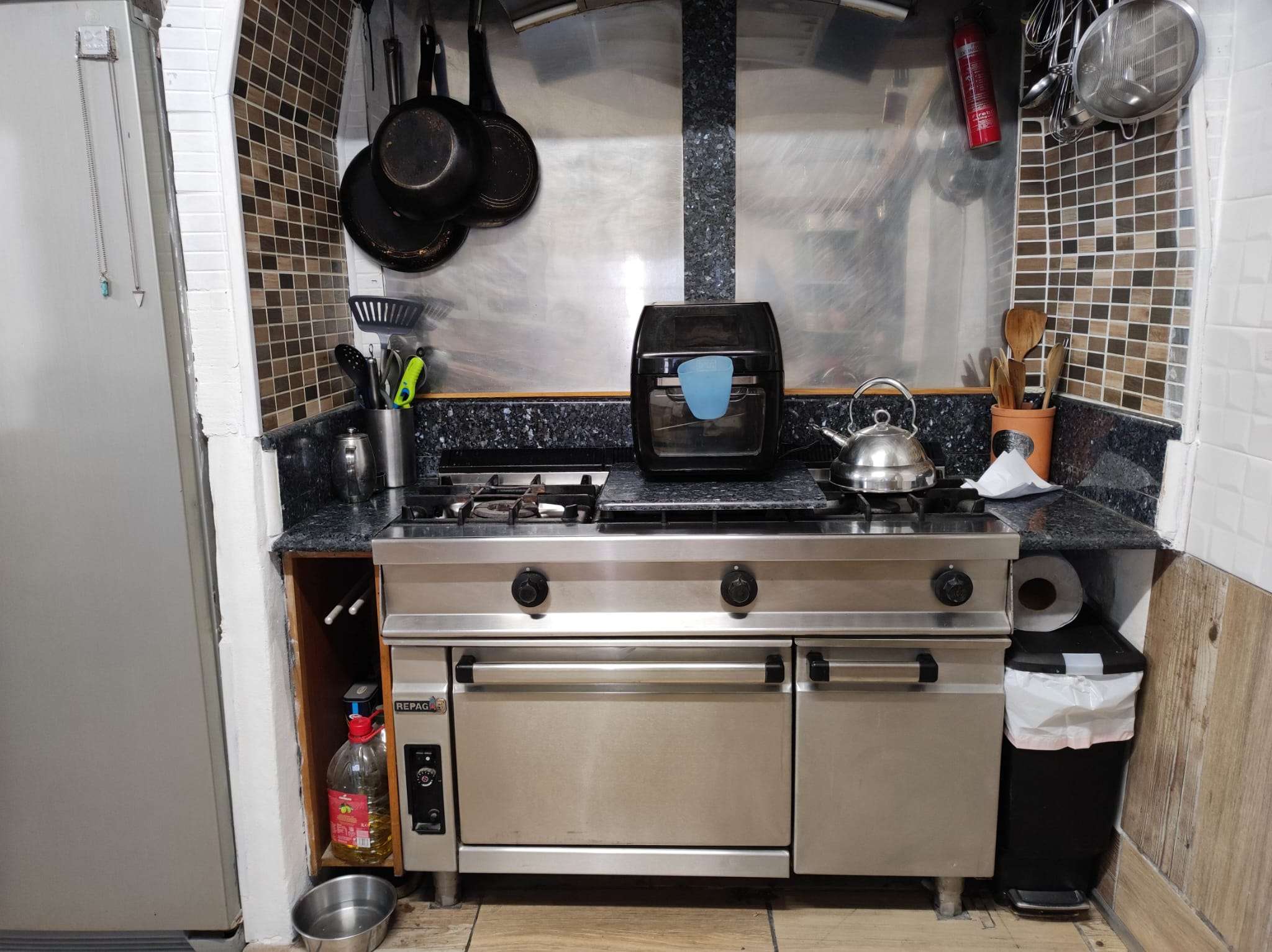 Upon entering the main house, you're greeted by a hallway with two spacious double bedrooms (one currently used as a storeroom), one on each side. Straight ahead is a wonderful open-plan kitchen and lounge area. The kitchen is a standout feature of the house, with beautiful oak cupbo