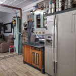 Upon entering the main house, you're greeted by a hallway with two spacious double bedrooms (one currently used as a storeroom), one on each side. Straight ahead is a wonderful open-plan kitchen and lounge area. The kitchen is a standout feature of the house, with beautiful oak cupboards and granite worktops that blend modern convenience with rustic charm. The lounge, which features a log burner that efficiently heats the entire house in colder months, offers a welcoming and comfortable space. The shower room is another standout feature – a stunningly designed space that makes the most of the property's unique character.