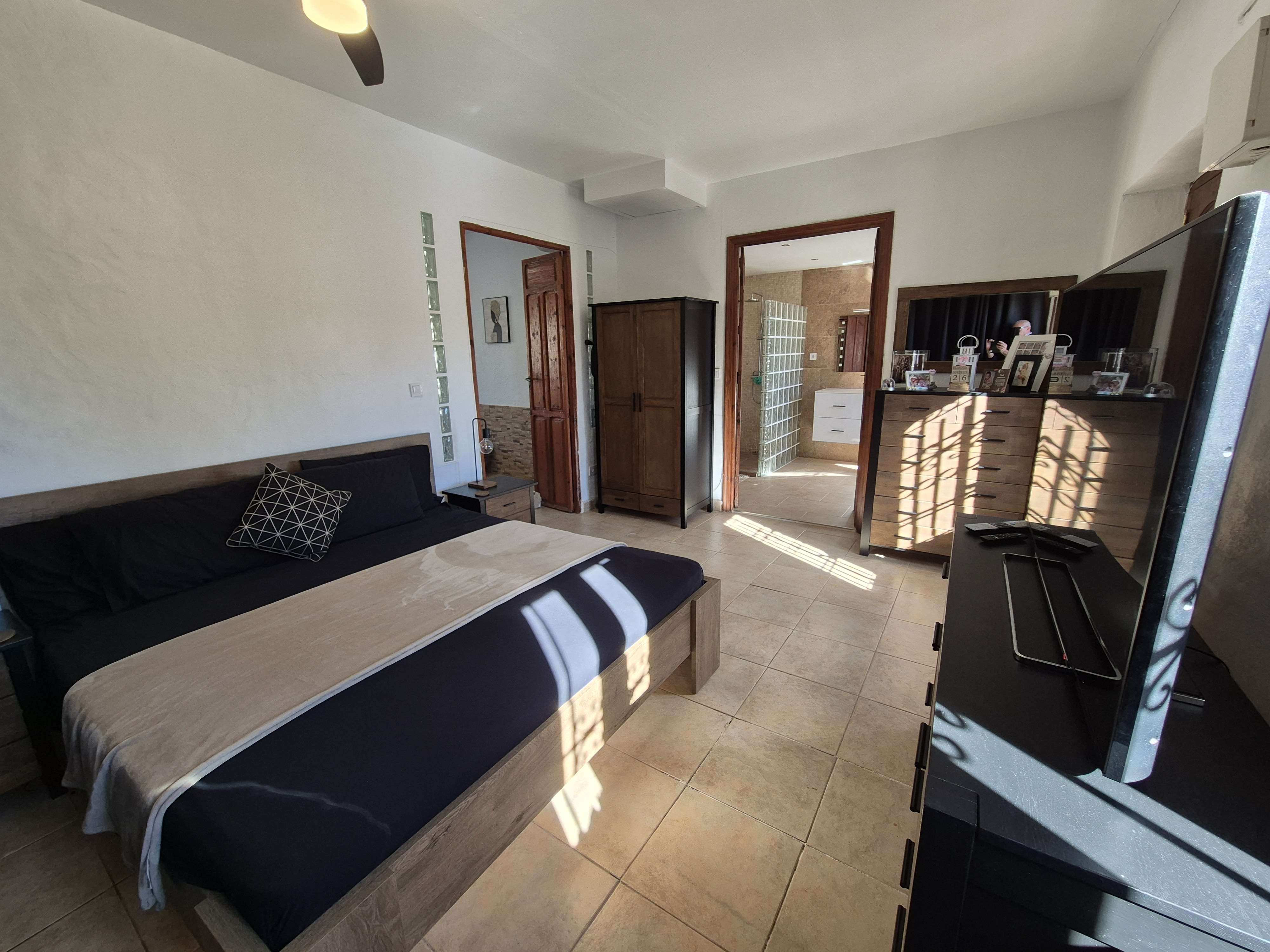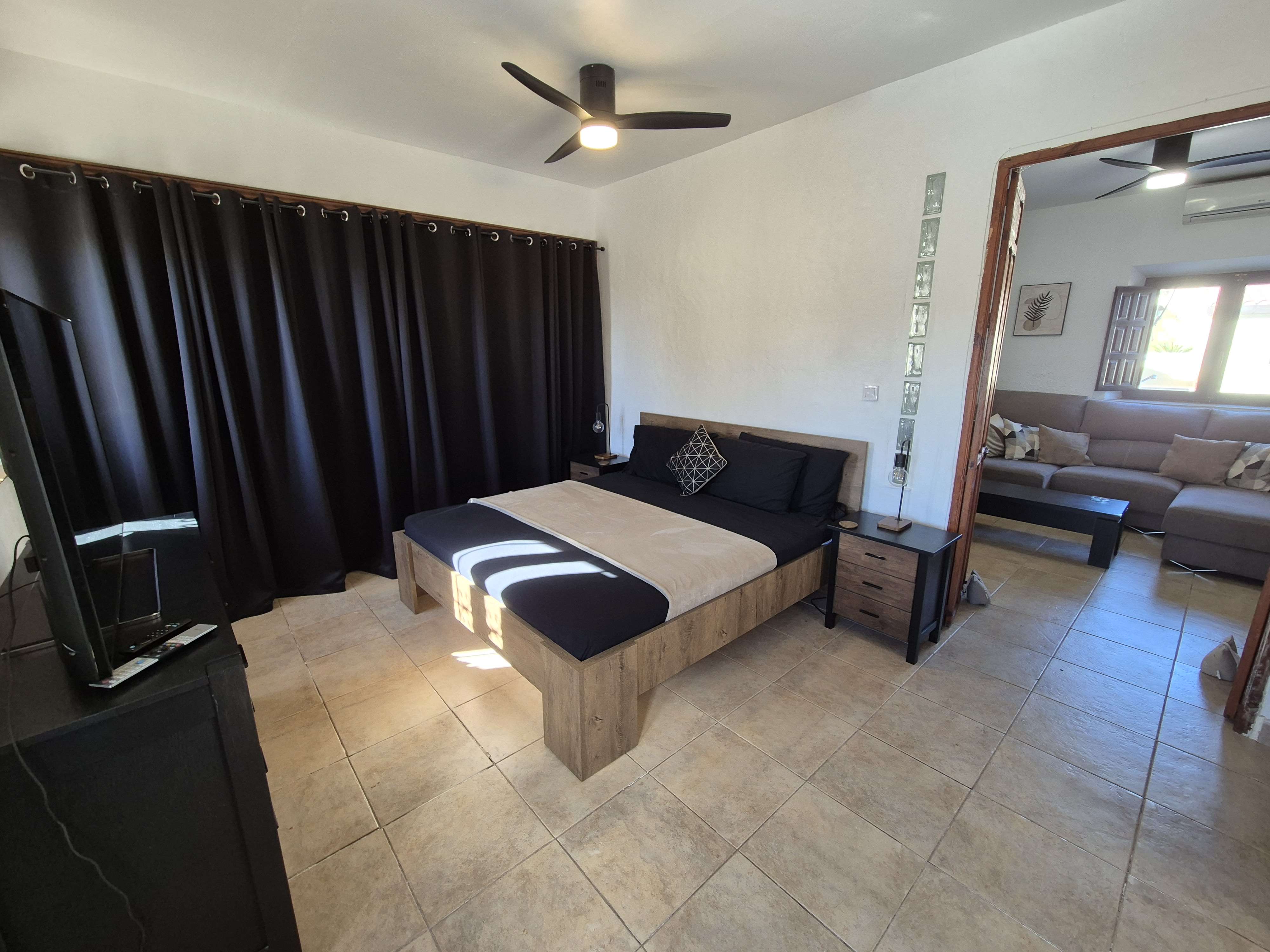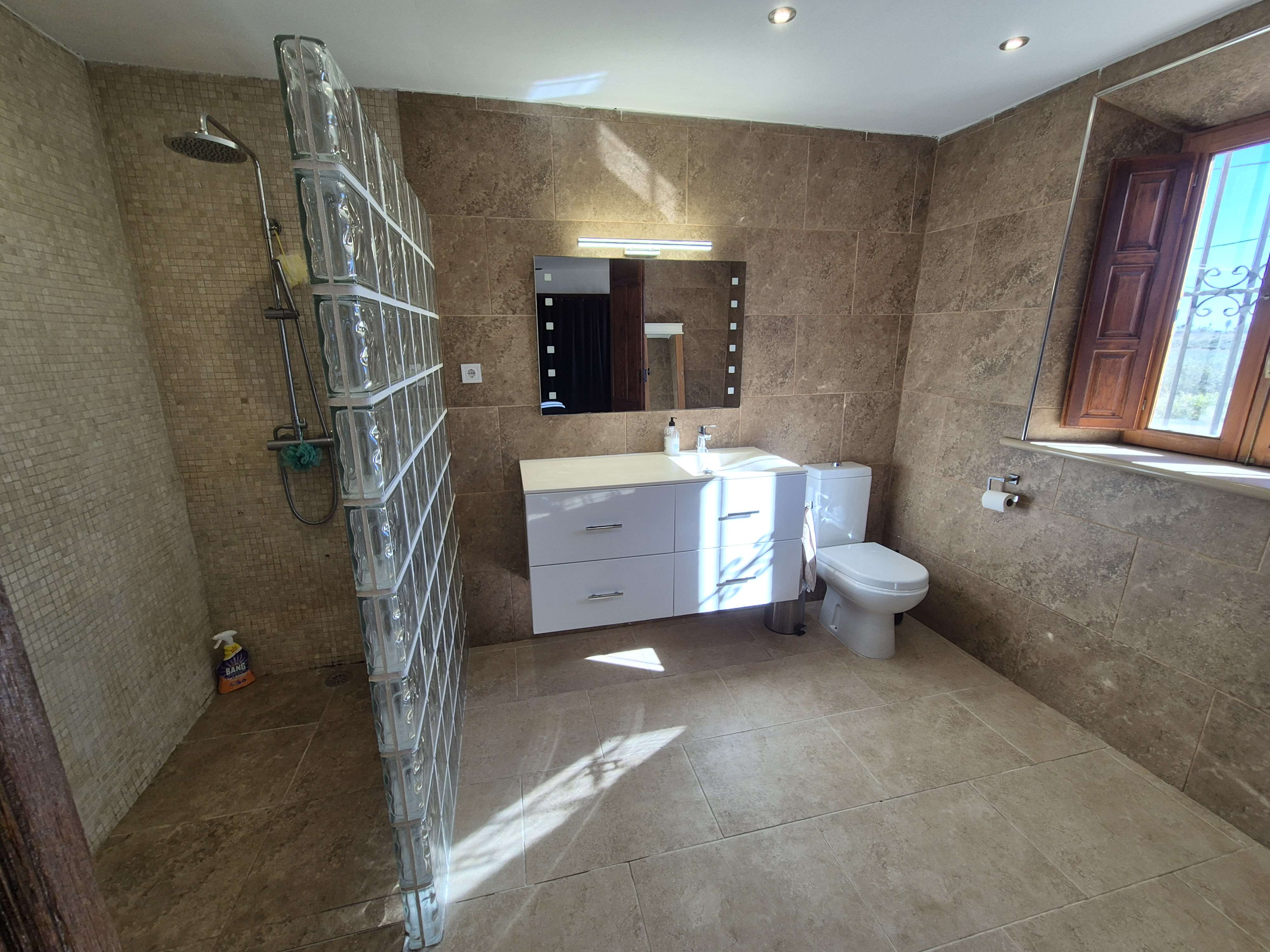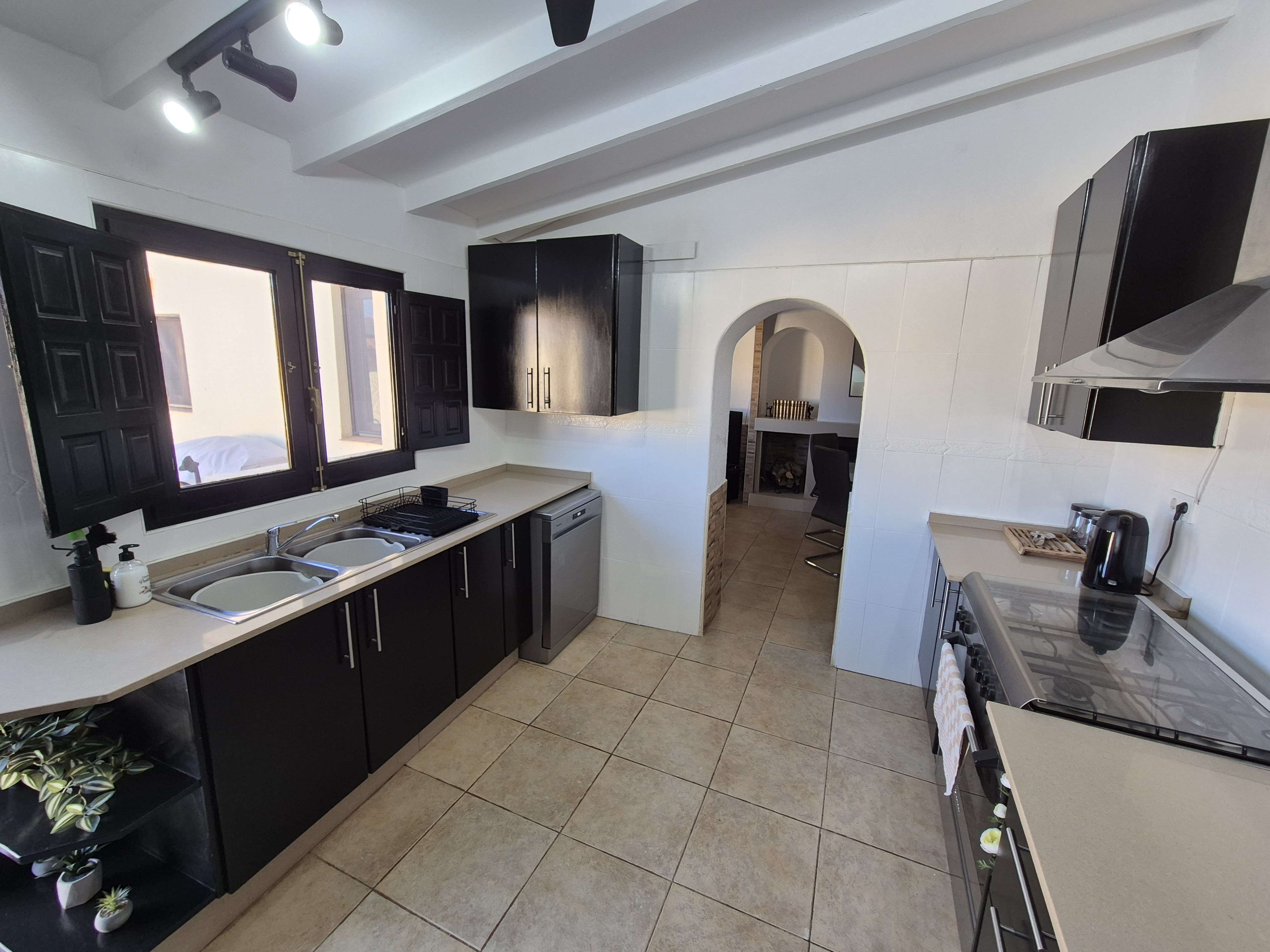 The main house has also been recently tastefully redecorated and comprises of 2 double bedrooms, 2 bathrooms, in the master bedroom there is an attractive wooden double door giving access to the front of the property. Plus a spacious en-suite bathroom and a large, walk-in glass-brick shower and a modern vanity unit and W.C. There is also a bright kitchen with large granite worktops including a double stainless-steel sink, with lots of floor and wall cupboards providing ample storage, plus a large gas range, dish washer, washing machine, microwave and fridge-freezer. Off the kitchen is a spacious living/dining room with a log-burner and a beamed ceiling. The property also benefits from a useful storage/linen room which services the four apartments. The master bedroom and the sitting/dining room feature climate control.